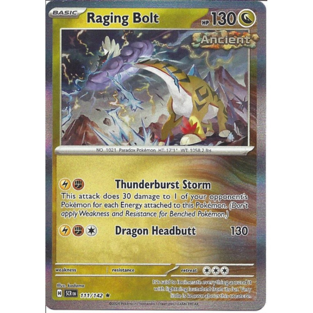 Raging Bolt is here, in pack fresh condition, and ready to add to your pokemon collection today!
